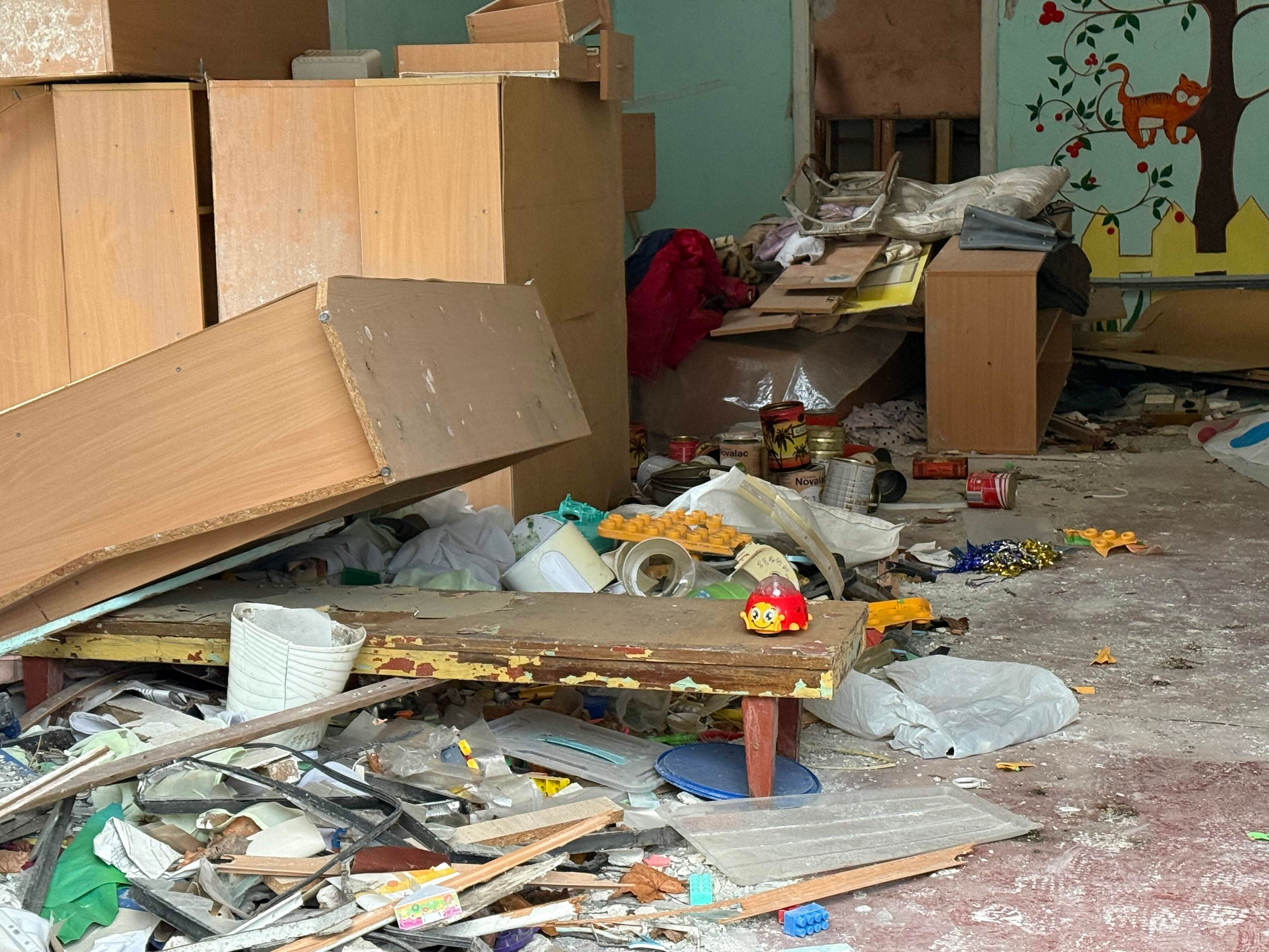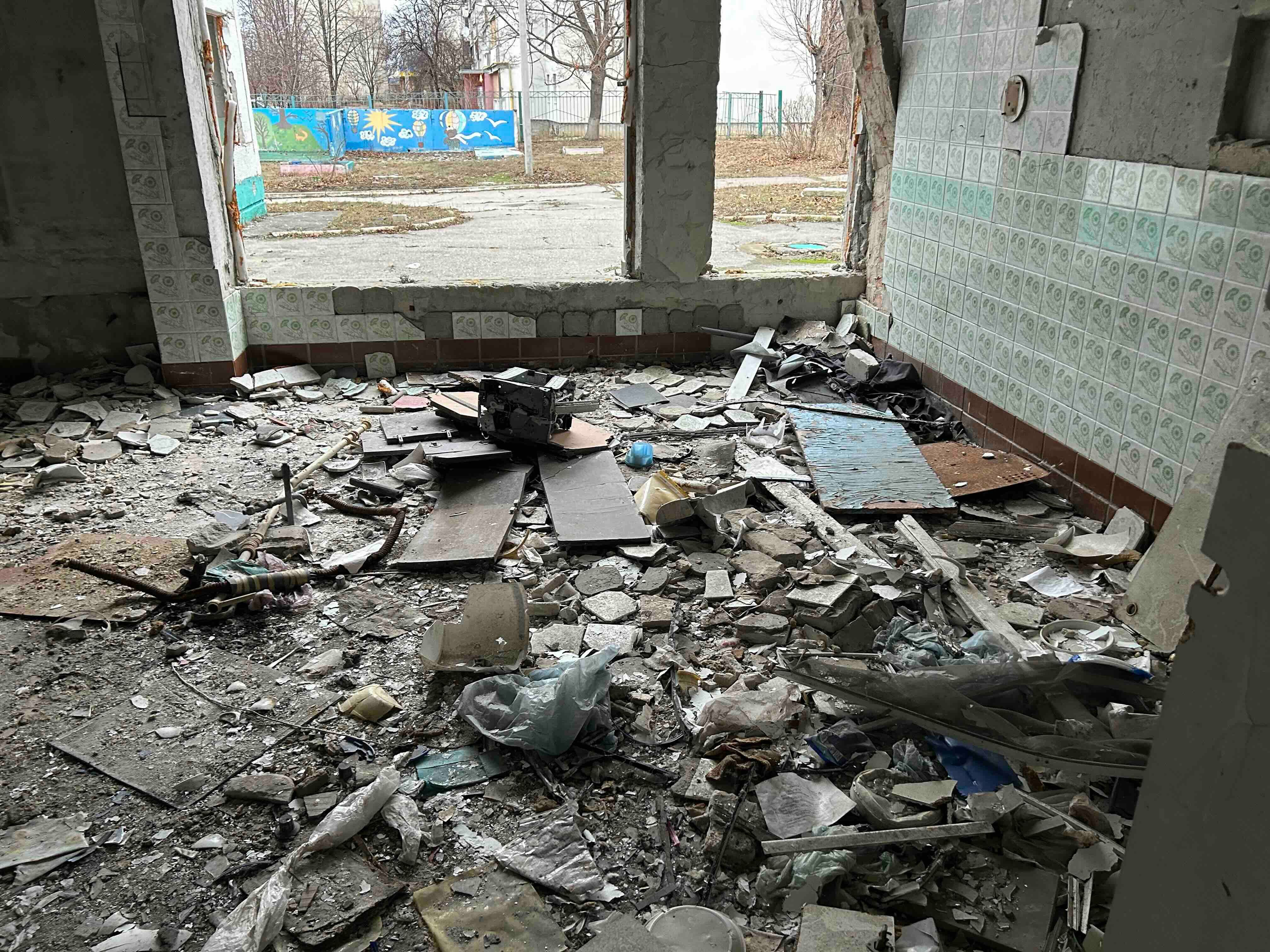Мы обследовали здание изнутри. Видно, что в момент разрушения в здании находились стандартные для детских садов мебель, посуда и игрушки. Мы не выявили никаких признаков того, что там размещались какие-либо военнослужащие.