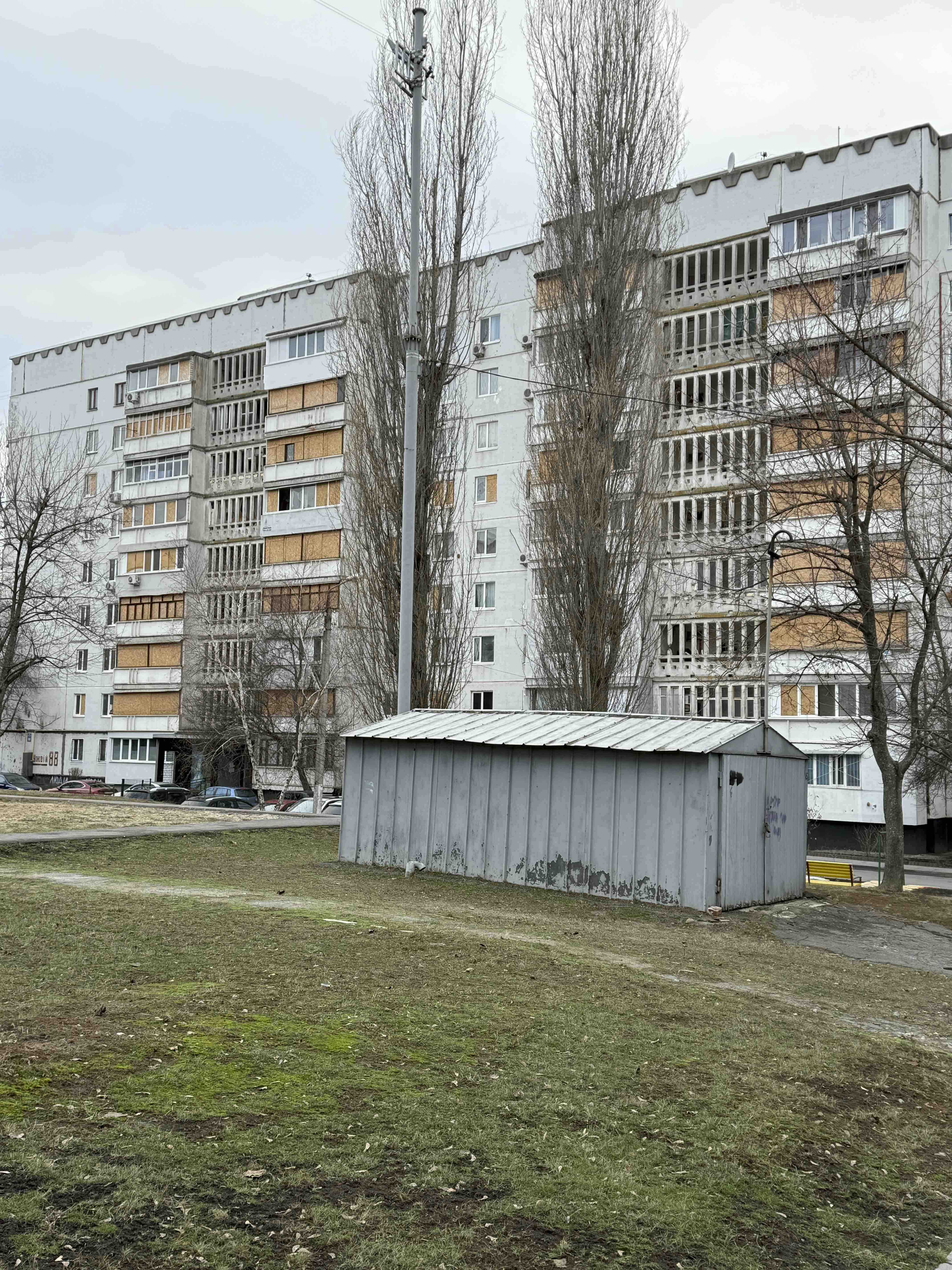 Улица Натальи Ужвий, листы фанеры вместо оконных стекол. Фото: ЦЗПЧ «Мемориал»