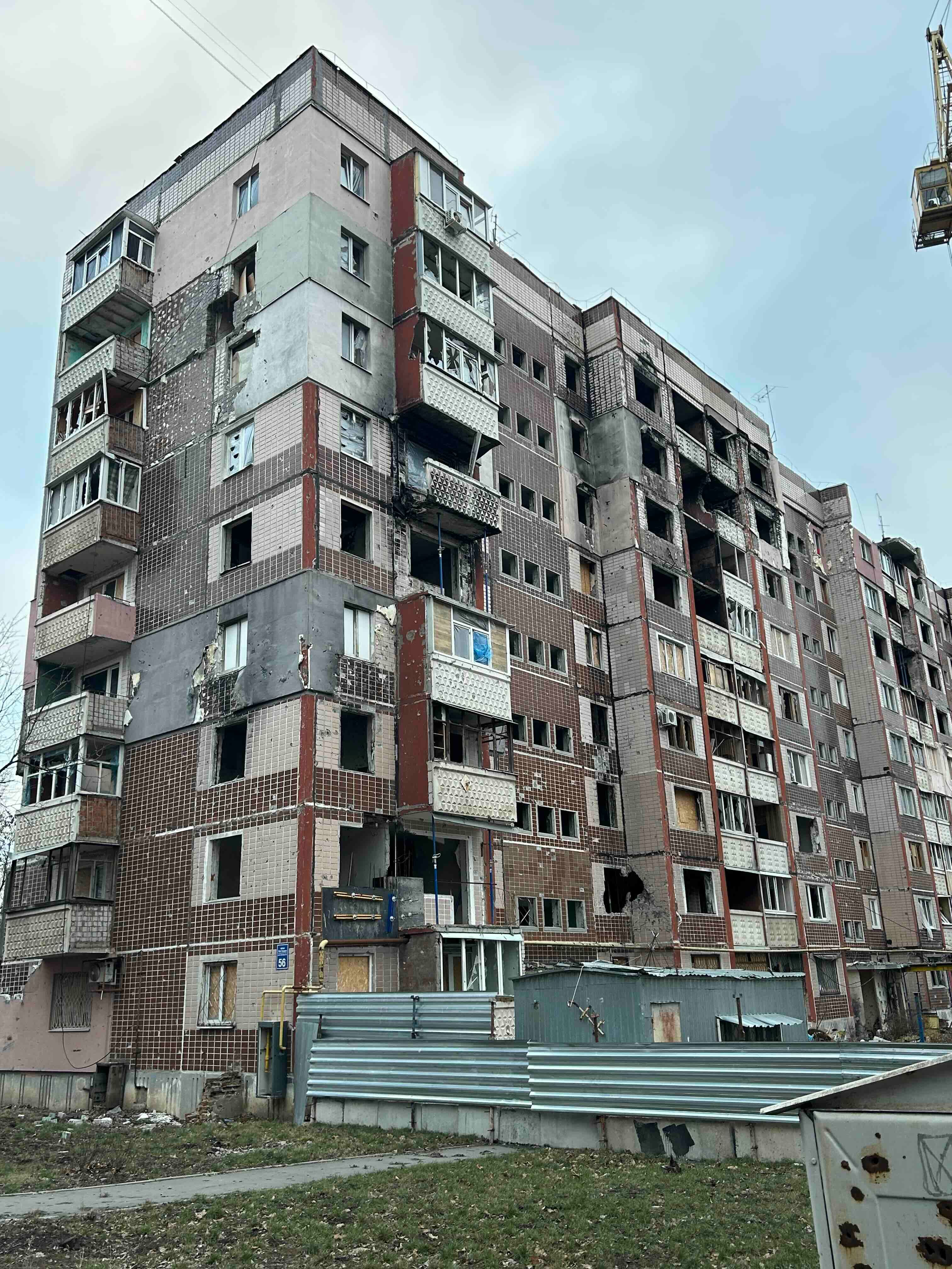 Жилой дом по улице Натальи Ужвий, 82 получил критические повреждения в 2022 году: «Этот дом уже знают по всему миру, и он стал лицом “русского мира” в этой войне», — сказал мэр Харькова Игорь Терехов. Проведя экспертизу, власти сочли, что первый подъезд дома восстановить невозможно.