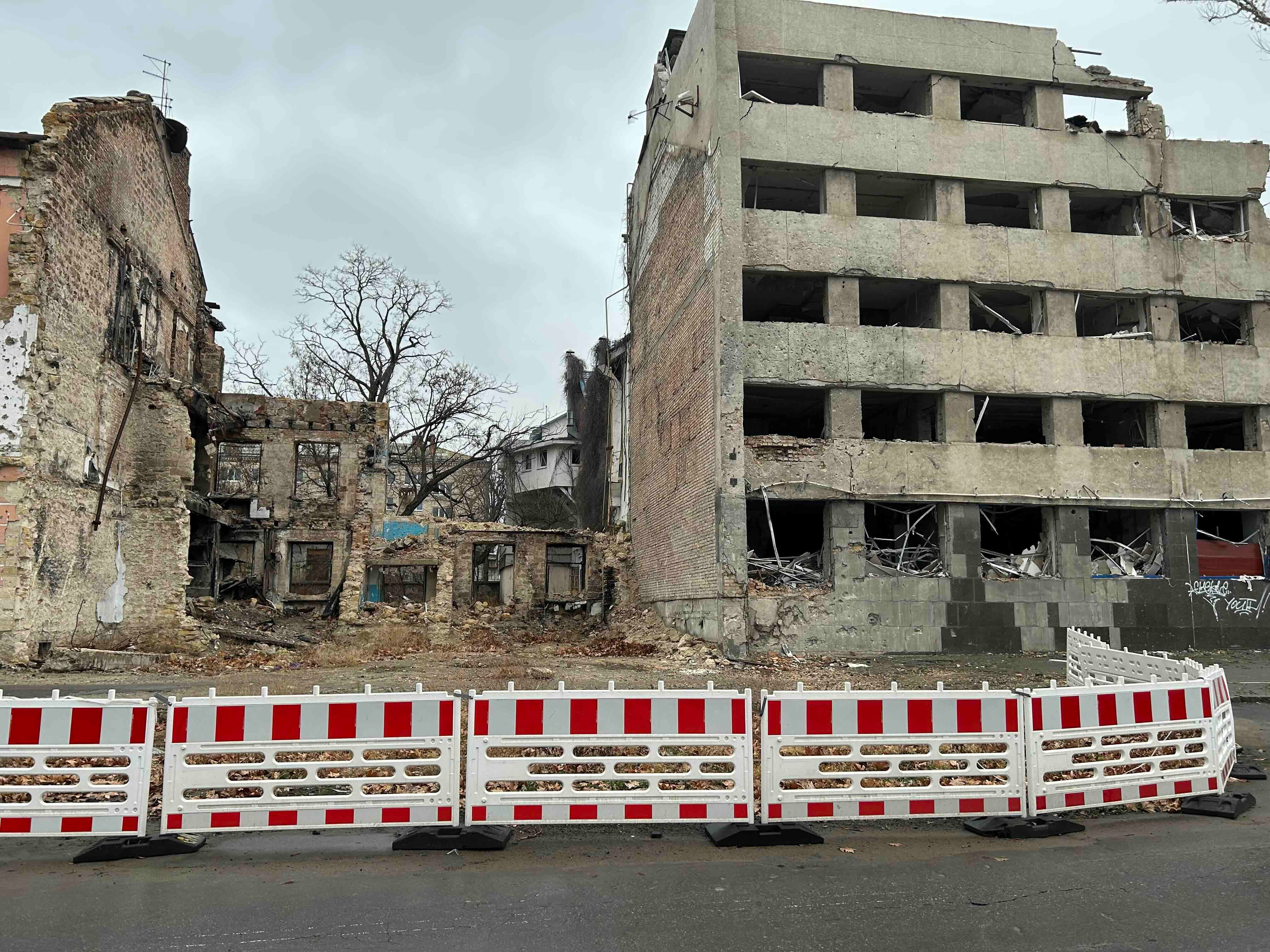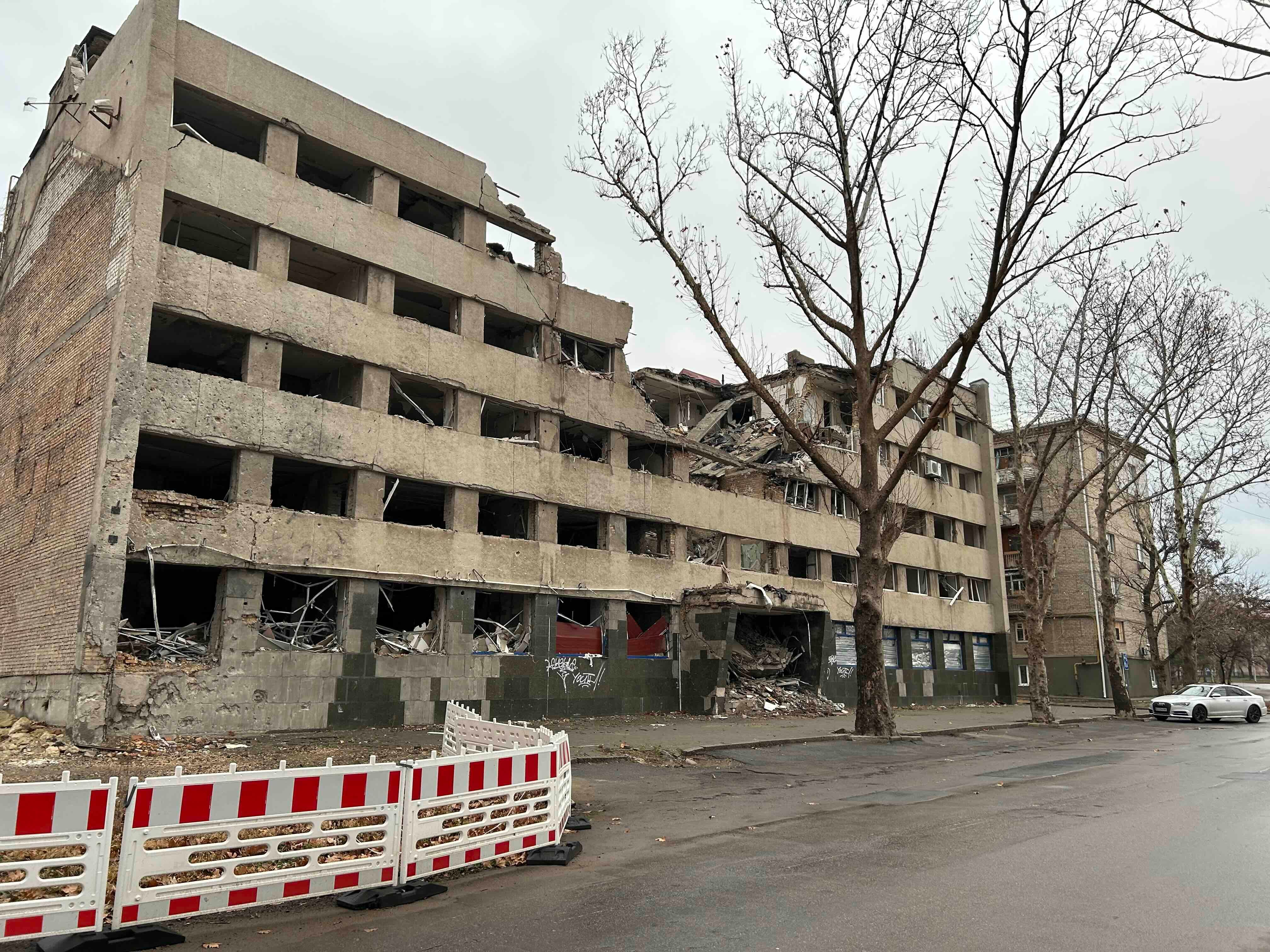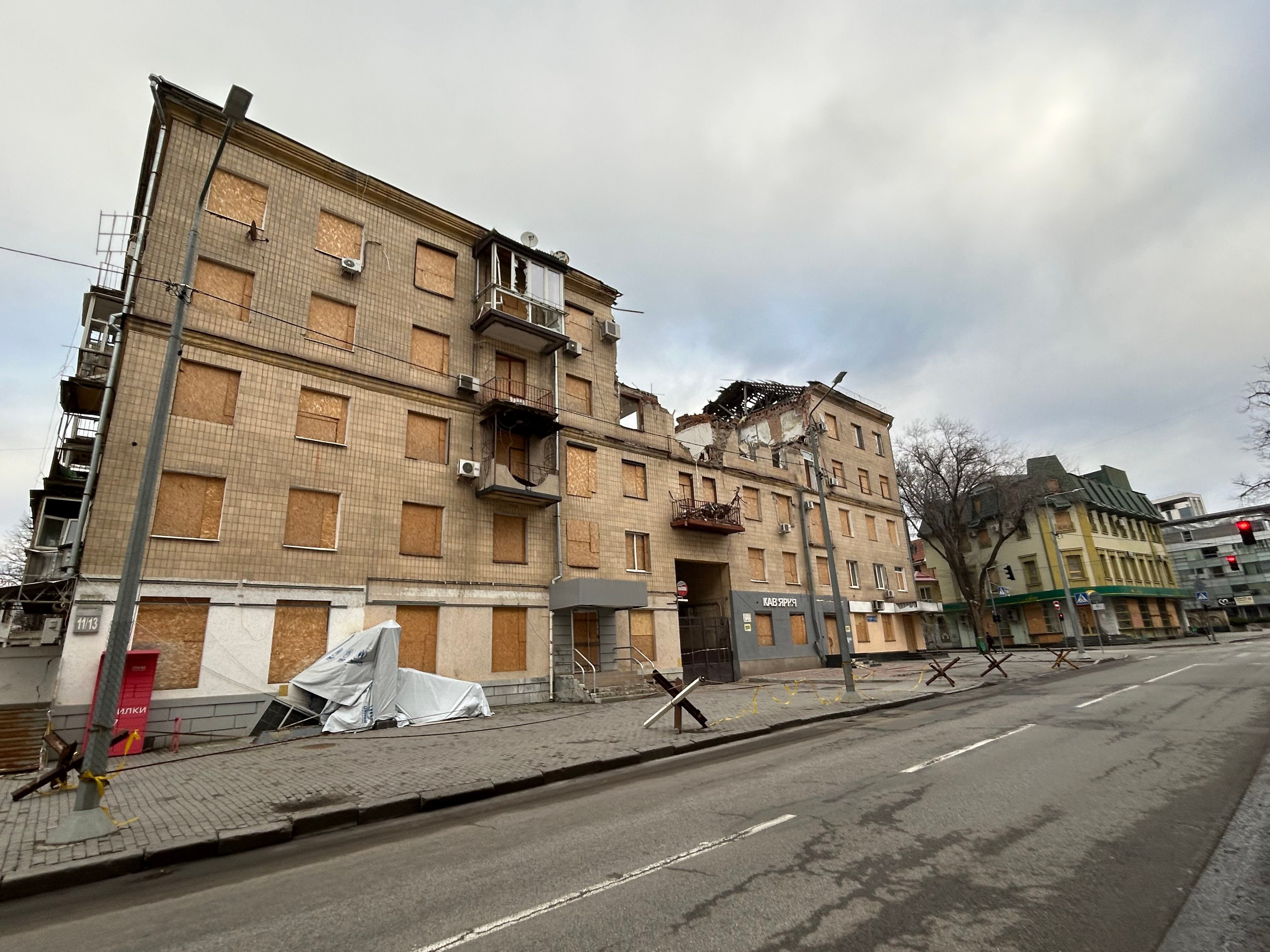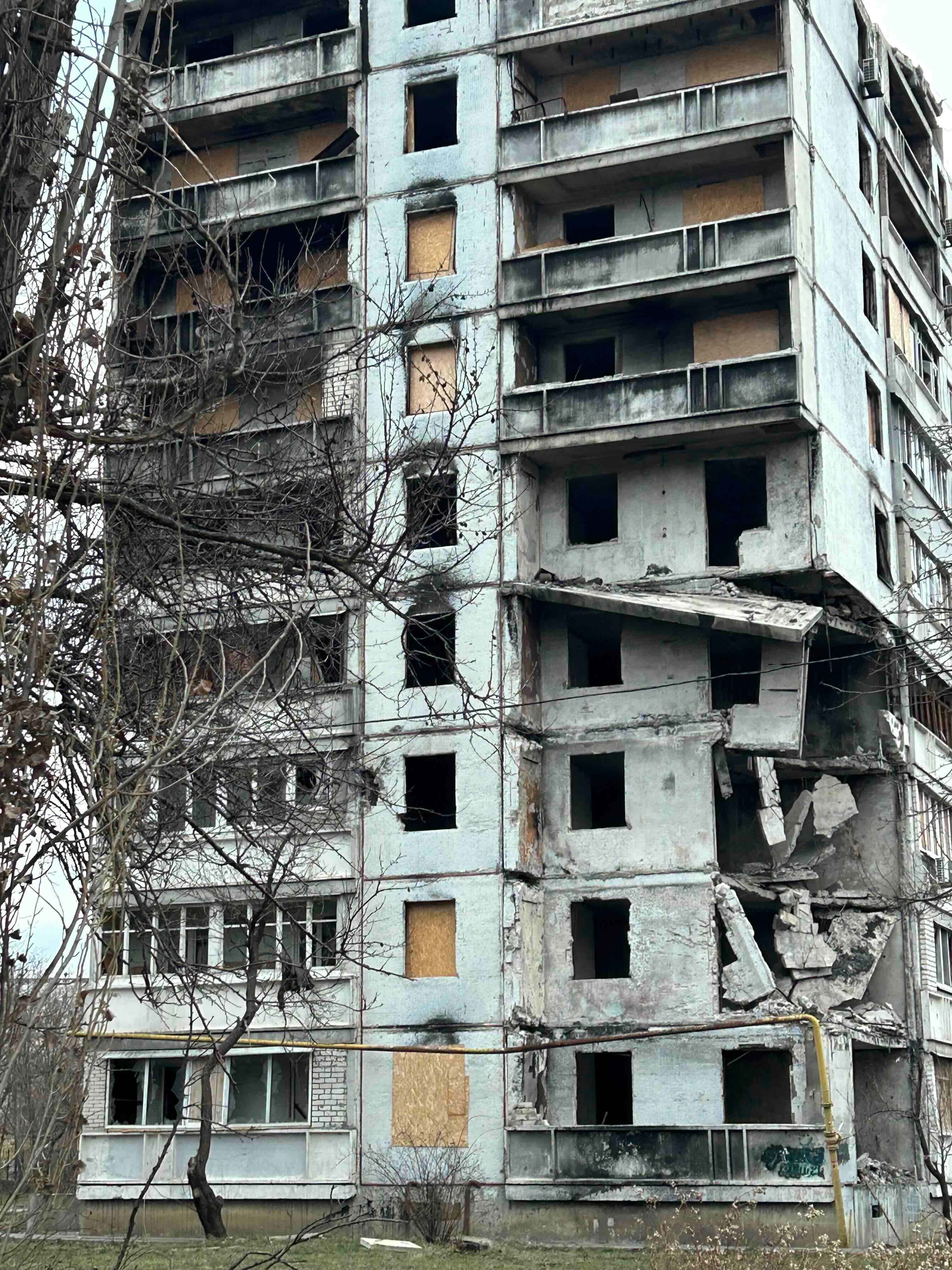 26 января 2025 года миссия посетила улицу Литовченко. Даже год спустя после ракетного удара были хорошо видны его последствия.