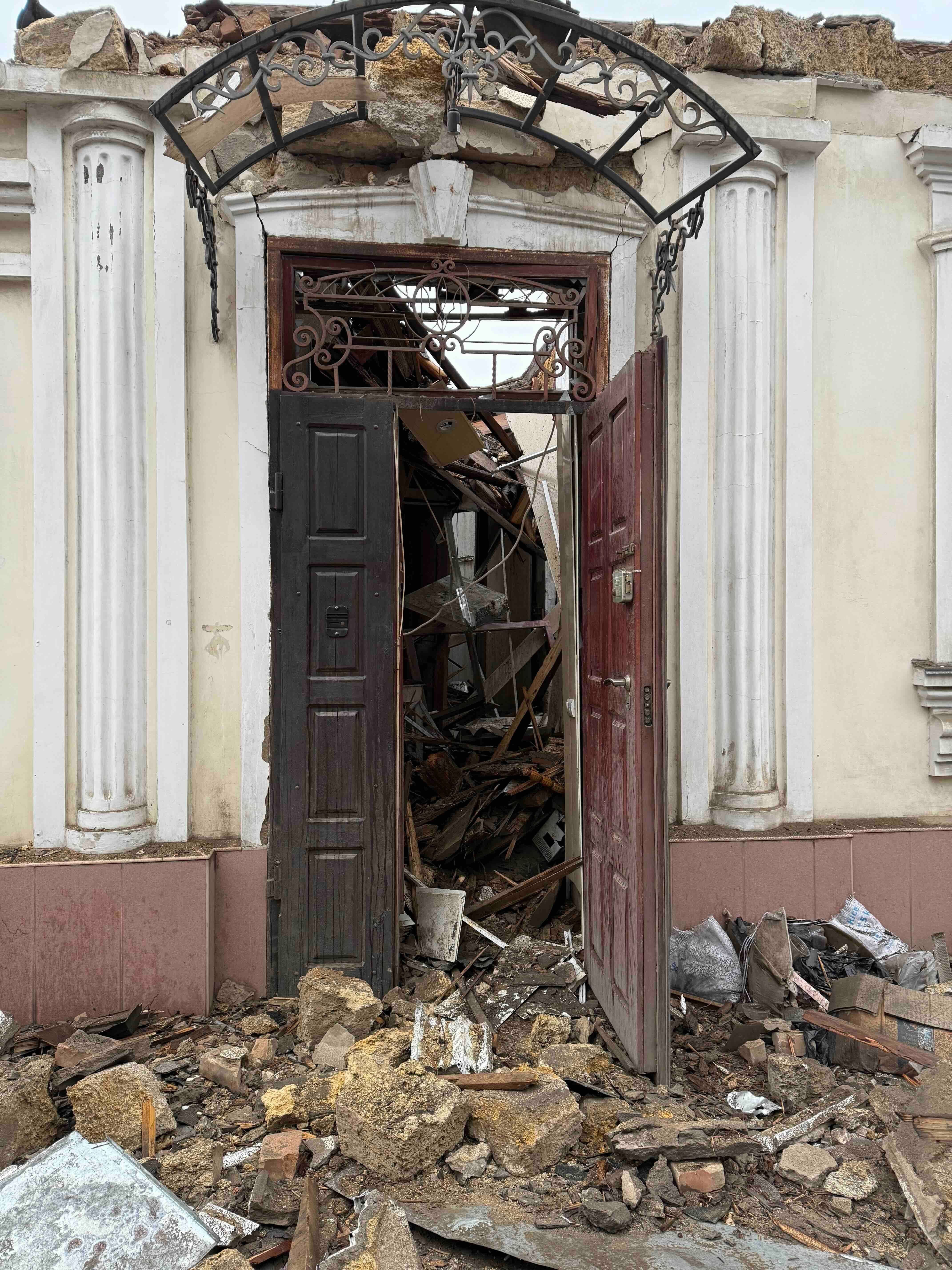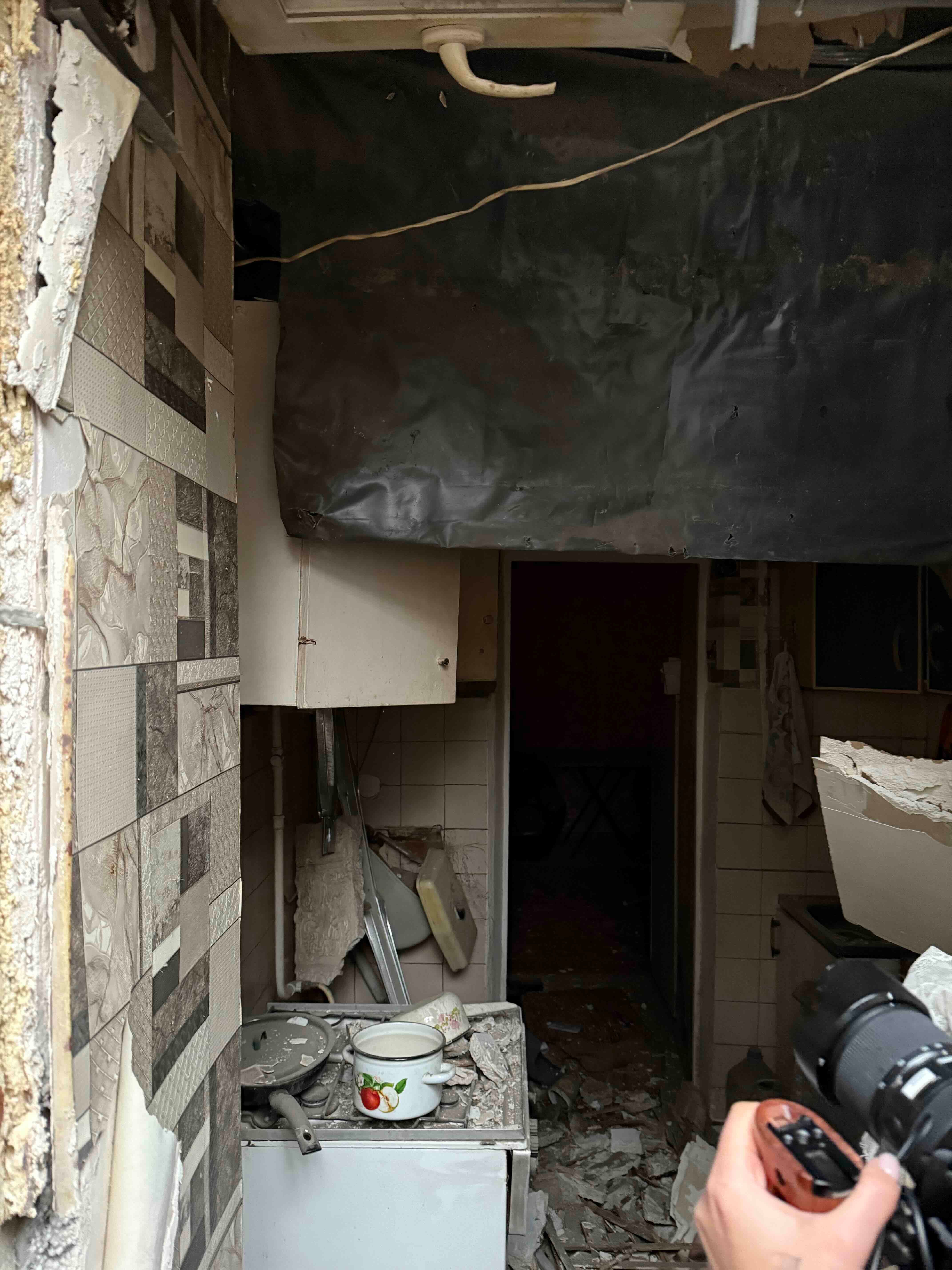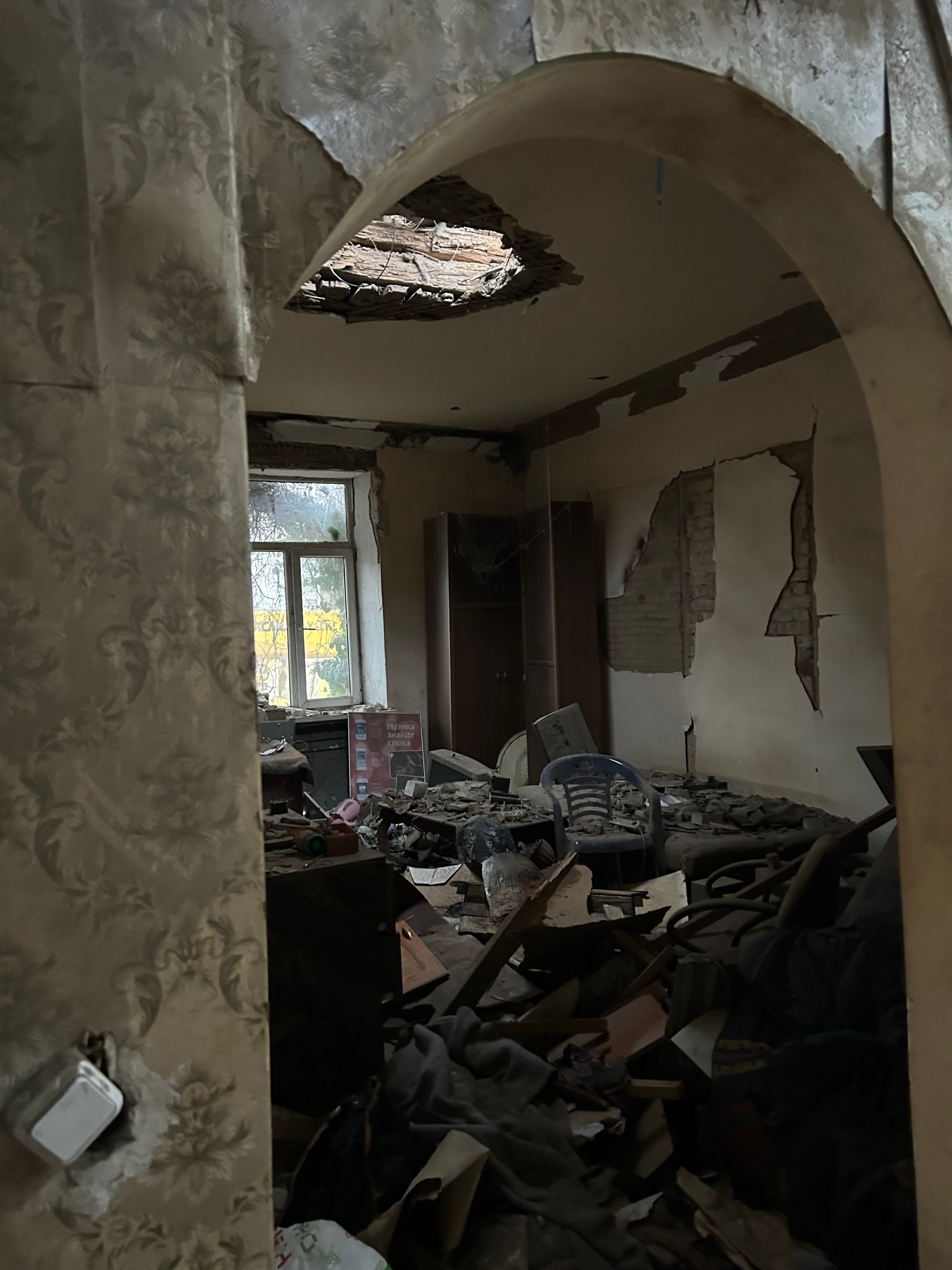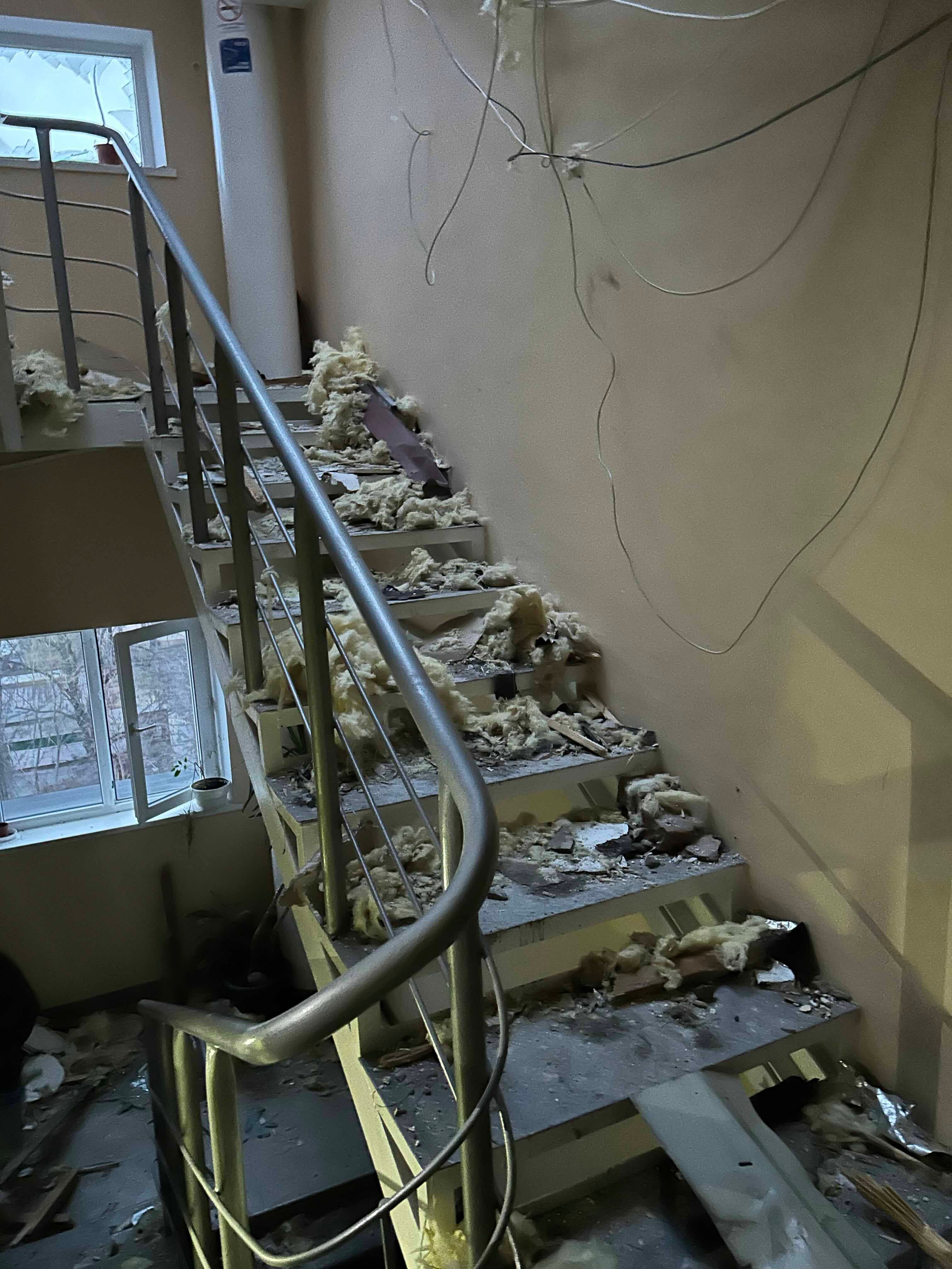26 января 2025 года миссия посетила улицу Литовченко. Даже год спустя после ракетного удара были хорошо видны его последствия.