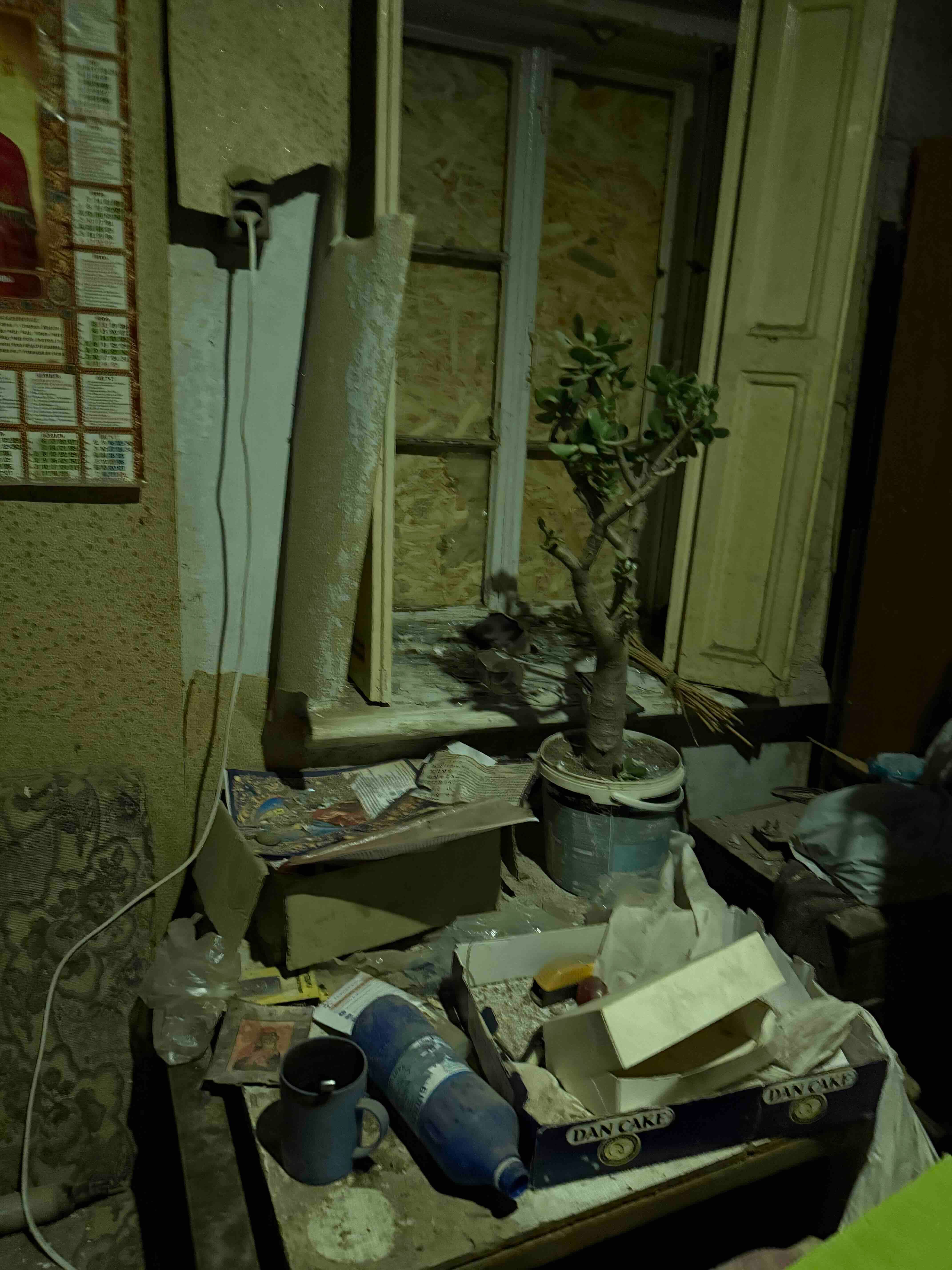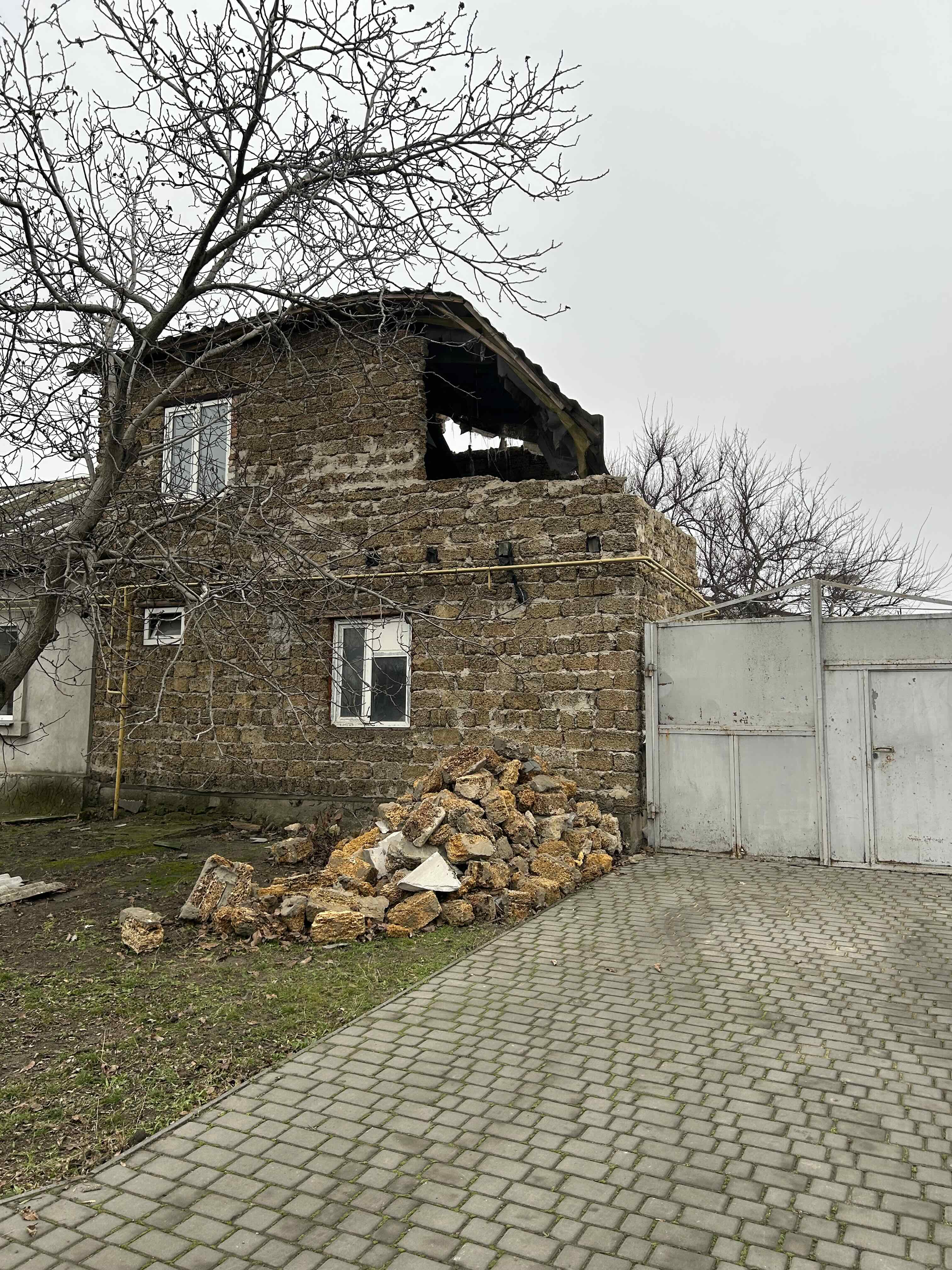 Житель дома по улице Алексея Вадатурского, 33, рассказал членам миссии, что в момент прилёта был дома, но сумел вовремя выскочить на улицу. Он услышал крики пожилой соседки: обломками обрушившегося дома ей зажало ноги, развалины загорелись. Соседи вытащили женщину и отвезли в больницу. Дом нашего собеседника был полностью разрушен, остались только стены.