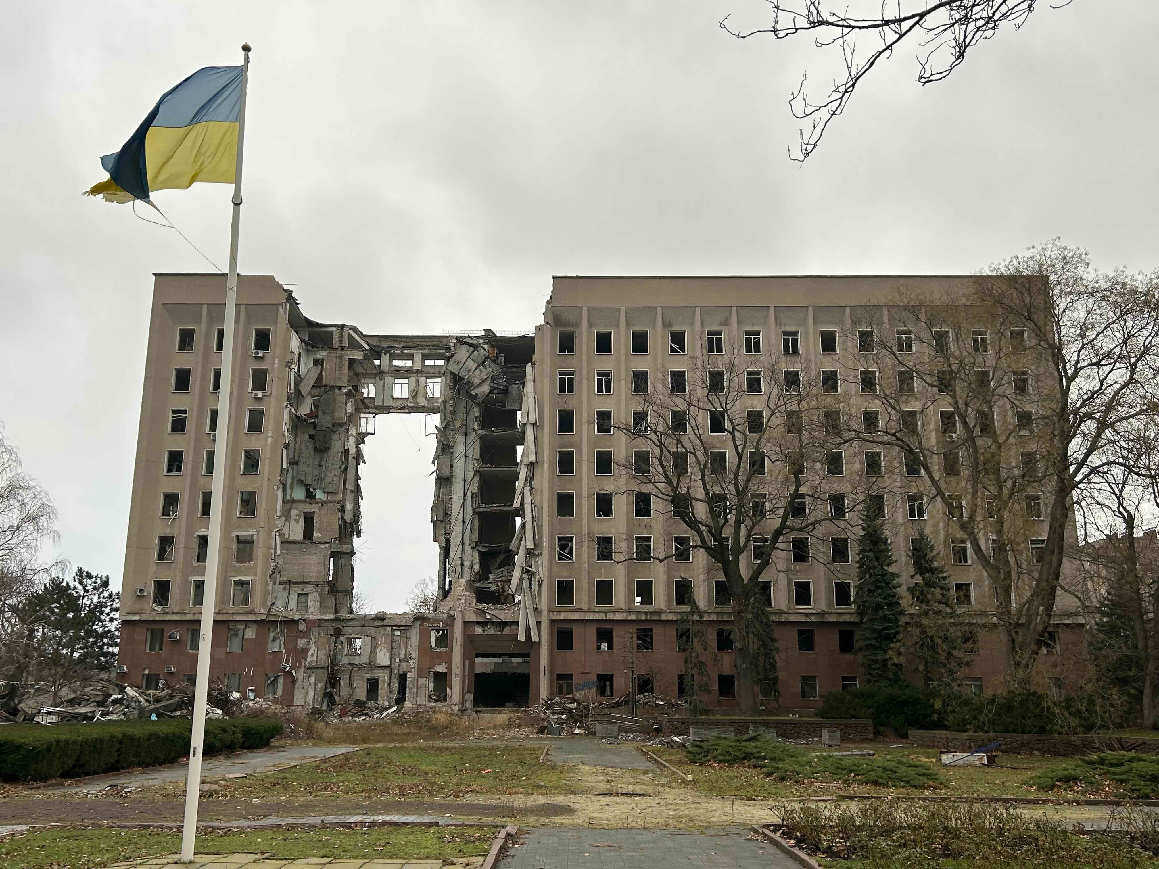 Здание Николаевской государственной областной администрации, разрушенное 29 марта 2022 года и до сих пор не восстановленное. Фото: ЦЗПЧ «Мемориал», 21.01.2025