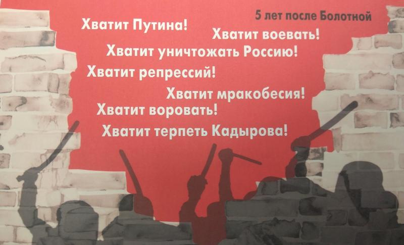 На баннерах было написано: «Пять лет после Болотной, Хватит Путина! Хватит воевать! Хватит уничтожать Россию! Хватит репрессий! Хватит мракобесия! Хватит воровать! Хватит терпеть Кадырова!» и «Болотное дело — преступление путинского режима!». Акция была согласована, Давидис был одним из её организаторов.