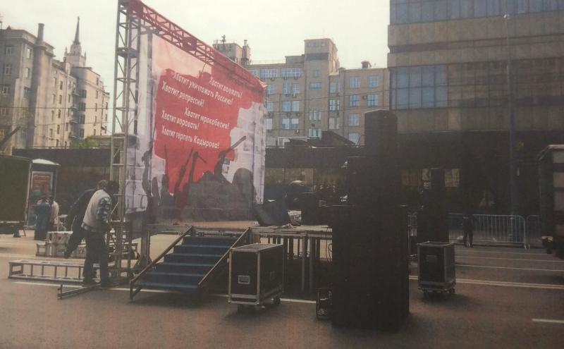 6 мая 2017 года, во время митинга, посвященного пятилетней годовщине «болотного дела», полицейские в сопровождении людей в гражданской одежде демонтировали два баннера, установленных на сцене.