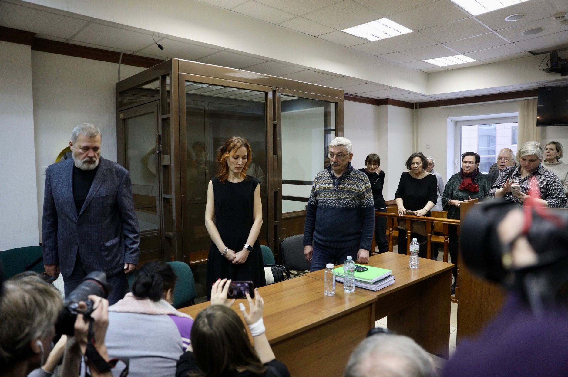 Дмитрий Муратов, Катерина Тертухина и Олег Орлов в Мосгорсуде. Фото: Медиазона